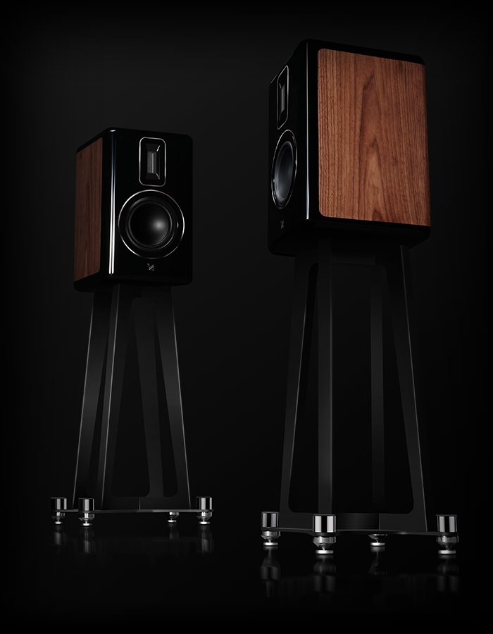 Стойки для АС Quad Revela 1, высота 590мм, изготовлены из березовой фанеры и высокоуглеродистой стали, вес 15,8 кг/шт