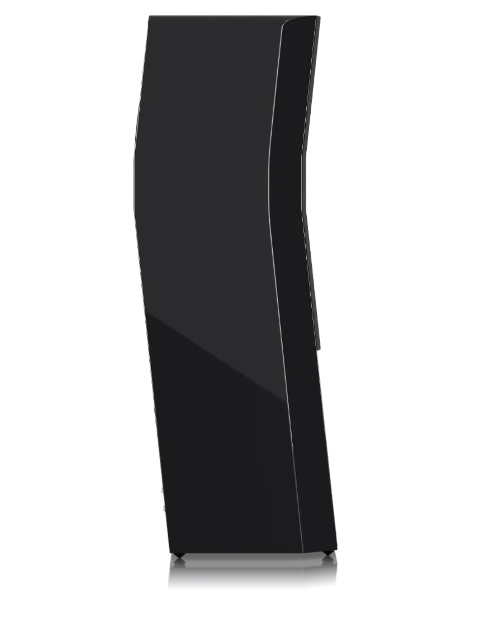 Конфигурация скошенной передней панели с динамиками вровень с поверхностью уменьшает краевую дифракцию и улучшает осевую и внеосевую характеристику верхних частот.