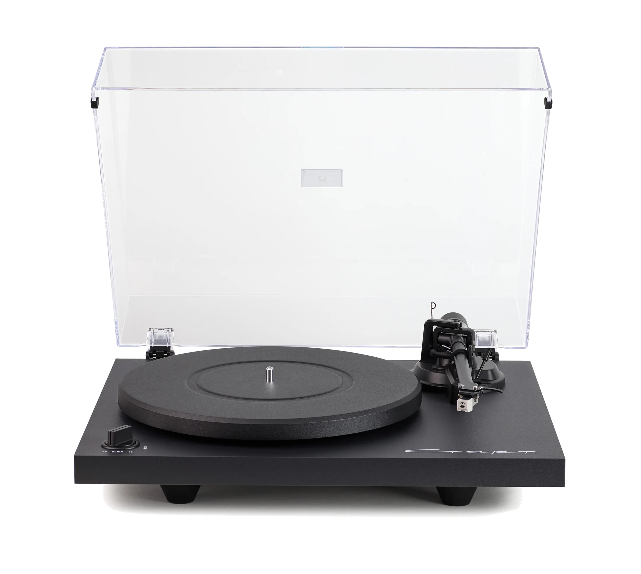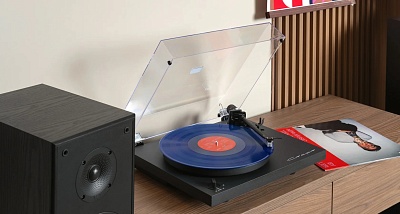 Проигрыватель виниловых дисков со встроенным фонокорректором. Установлен звукосниматель японской компании Audio-Technica, его положение точно настроено на заводе. Выбор скоростей — 33 1/3 или 45. Есть отключаемый автостоп. Пассиковый привод через субдиск и отдельно установленный мотор для защиты от вибраций. Корпус из мдф. Прозрачная пылезащитная крышка в комплекте.