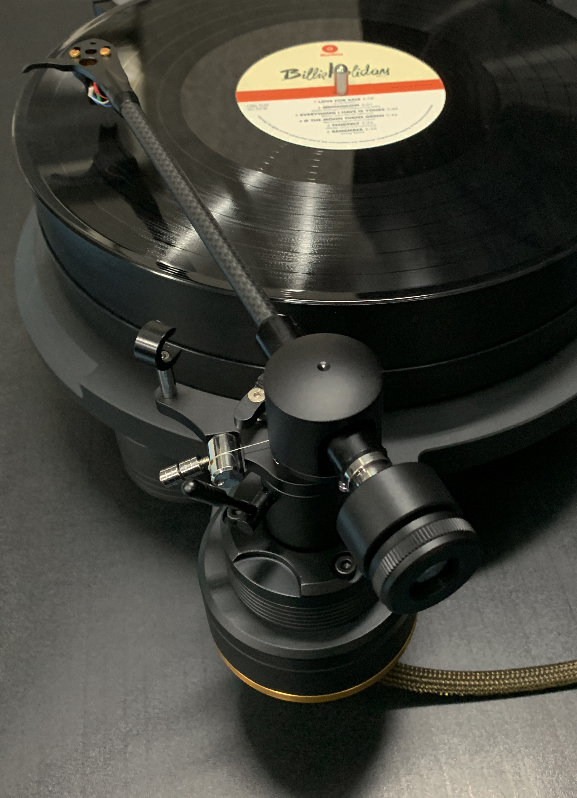 В стандартную комплектацию входит наш карбоновый тонарм AESHNA Carbon 9.5”. Но возможен заказ с более дешевым тонармом AESHNA Aluminum 9.5” или более дорогими тонармами: AESHNA Titanium 9.5” и AESHNA Titanium(Ag).