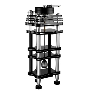 Bellagio Conquest - единственный в мире проигрыватель, оснащенный тринадцатью различными изогнутыми цоколями, предназначенными для достижения максимальной жесткости и стабильности конструкции. Это позволяет превосходно контролировать резонансы и вибрации, наилучшим образом используя геометрию акрилового тройного шасси (каждый уровень имеет три слоя: акрил-сталь-акрил).