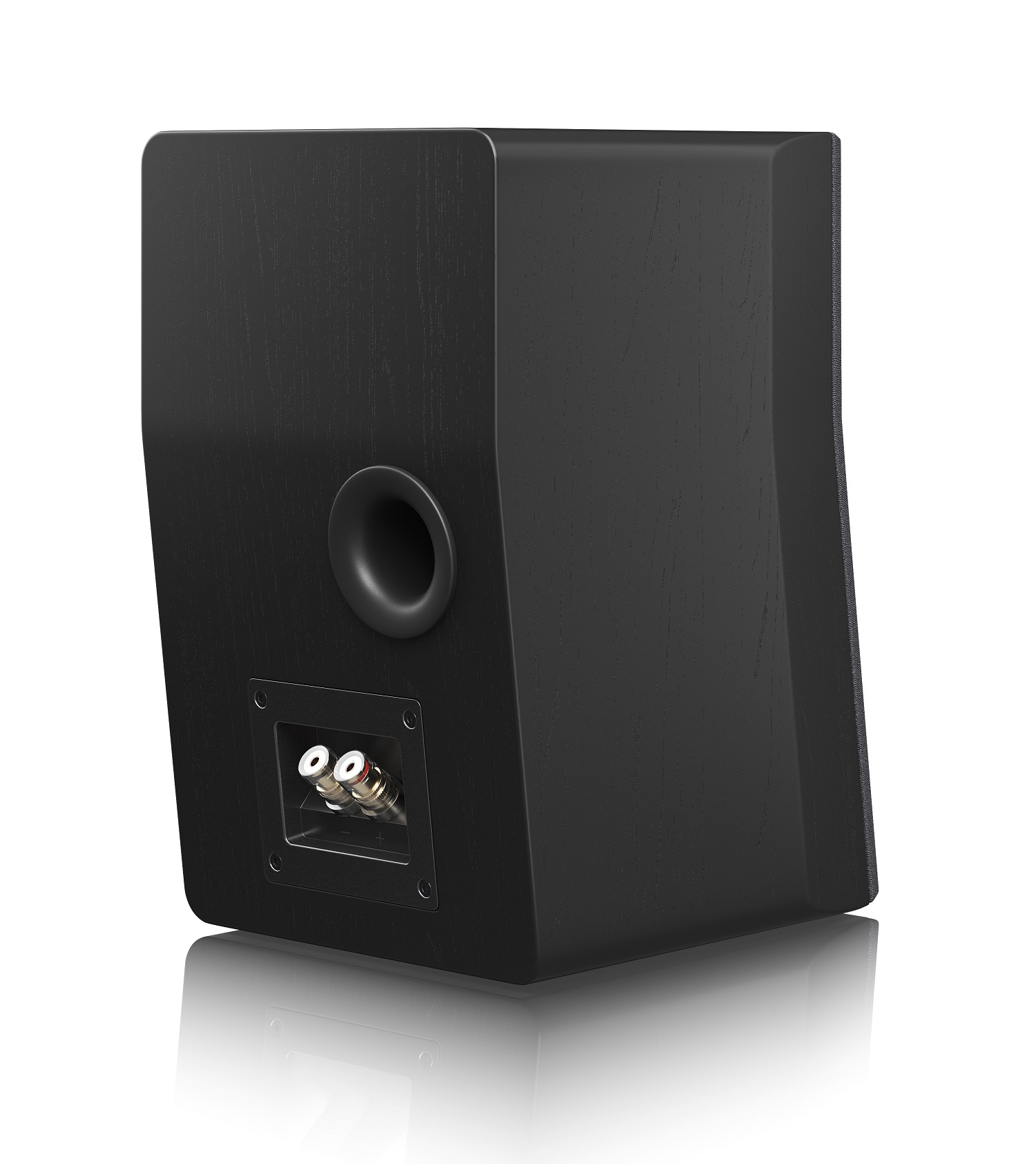 Конфигурация скошенной передней панели с динамиками вровень с поверхностью уменьшает краевую дифракцию и улучшает осевую и внеосевую характеристику верхних частот.
