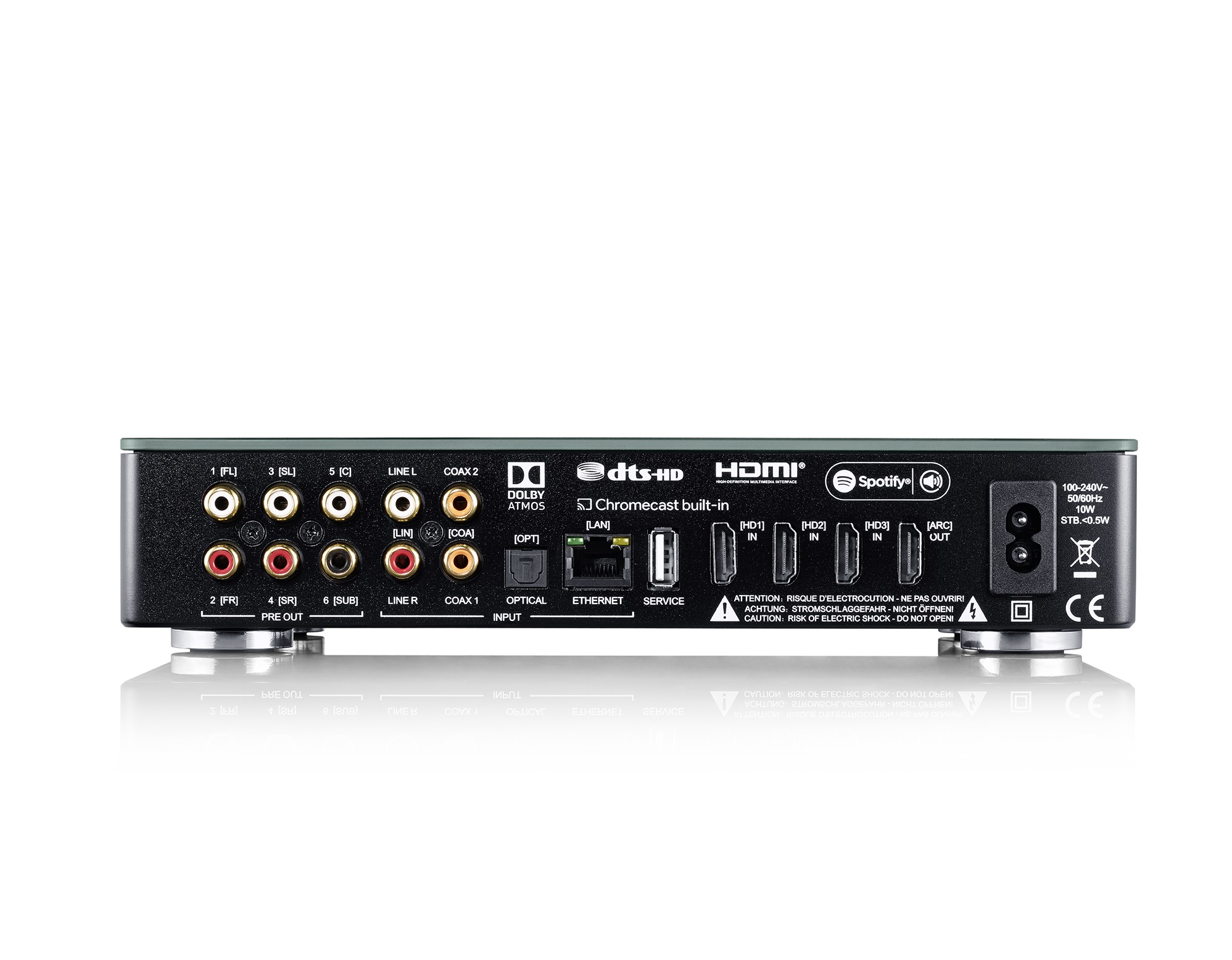 Благодаря встроенному Chromecast и функциям Spotify Connect ваша любимая музыка может транслироваться по беспроводной сети через WLAN. Стерео, домашний кинотеатр с 14 динамиками или подключение существующего усилителя к домашней сети - возможности разнообразны.