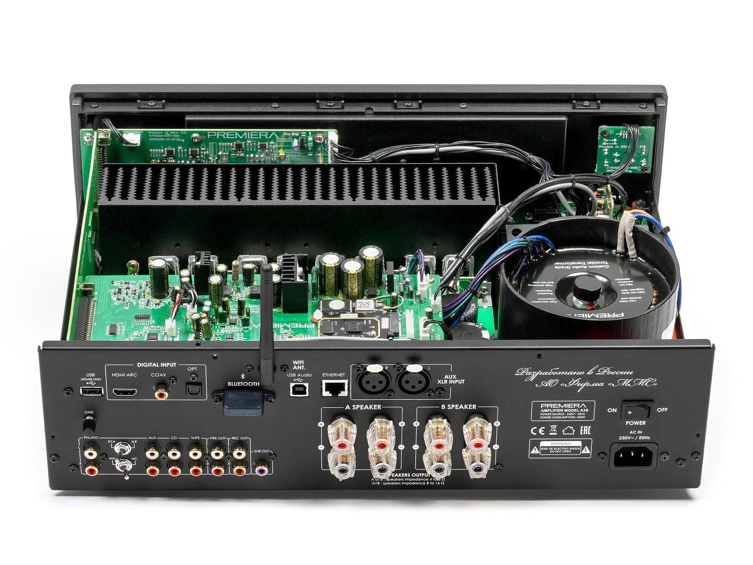 Premiera A3S - интегральный Hi-Fi стереоусилитель класса AB с номинальной выходной мощностью 110 Вт на канал, со встроенными сетевым проигрывателем, ЦАП, Bluetooth (aptX HD и AAC ), HDMI ARC, ...