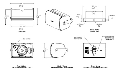 Двухполосная настенная акустическая система, мощность 6,25/12,5/25/50W в 100V режиме, 50W/max 100W в режиме 16 Ом. Материал корпуса – ABS пластик, два фазоинвертора, алюминиевая решетка. Твитер куполь...