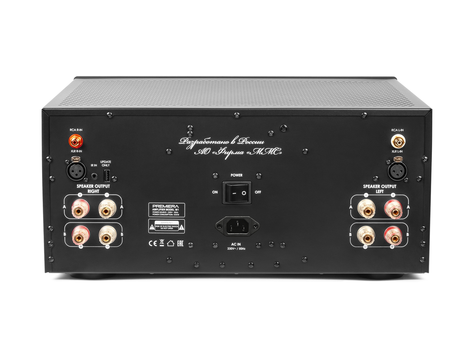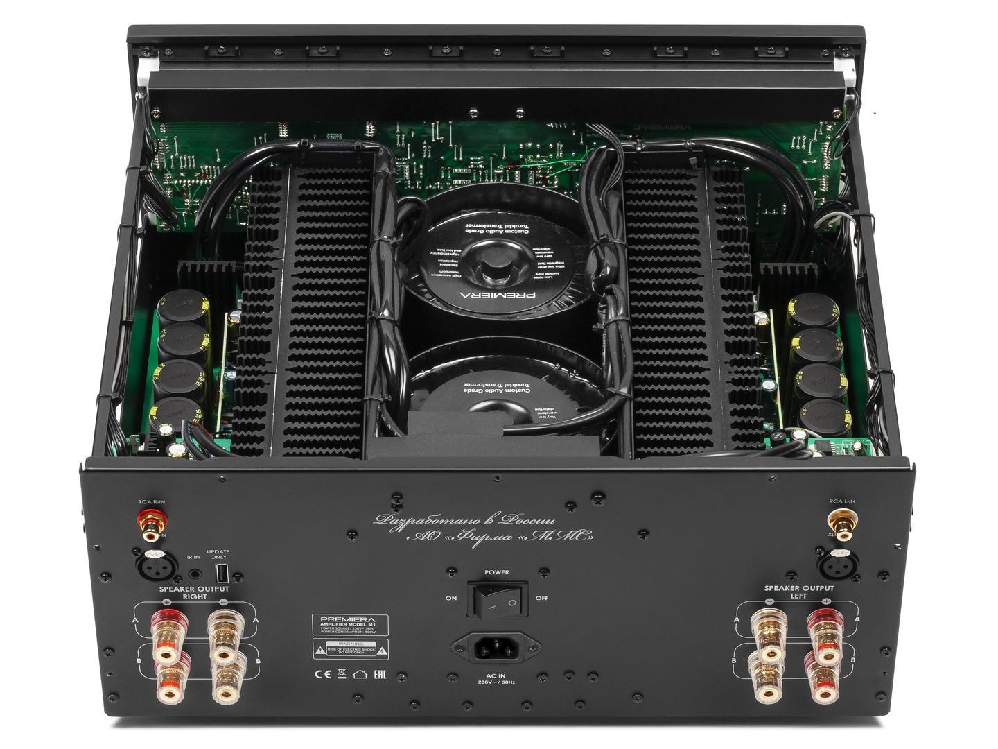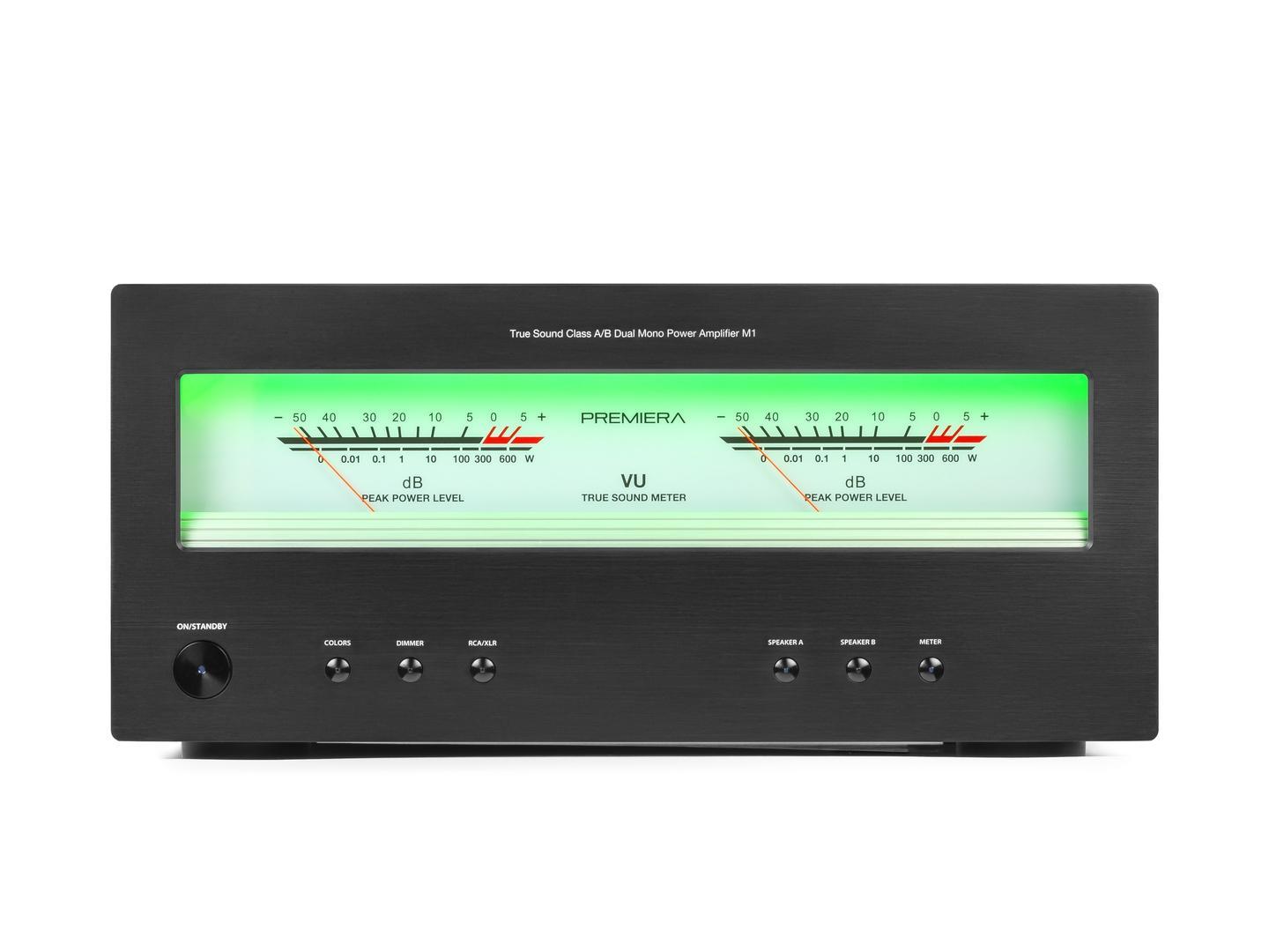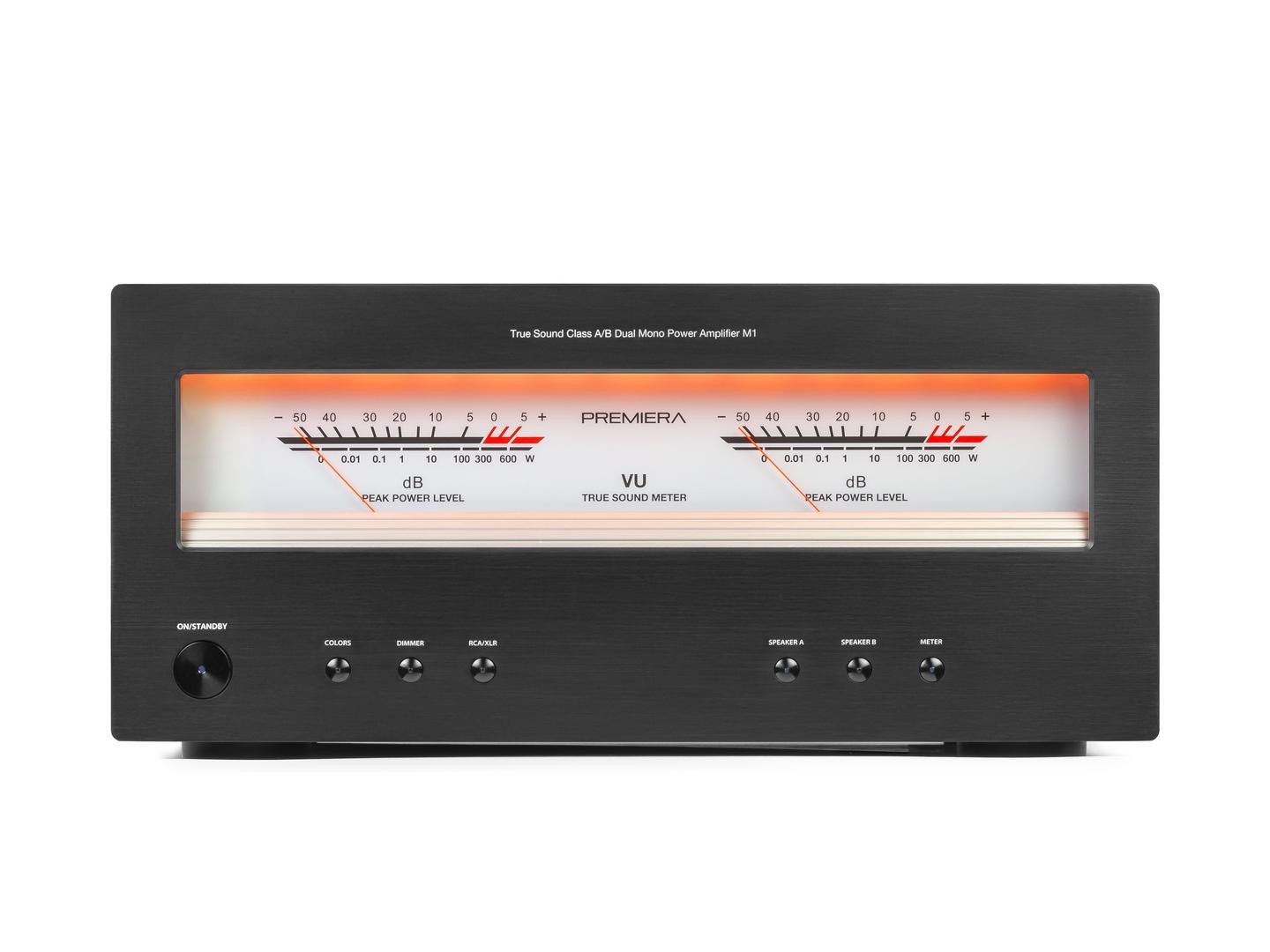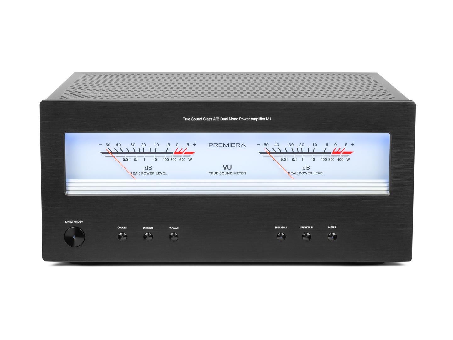 Premiera M1 - оконечный стереоусилитель мощности класса AB с номинальной выходной мощностью 260 Вт на канал, с балансными и небалансными линейными входами. Разработан по схемотехнике «двойное моно» и каждый канал усиления оснащен раздельным блоком питания.