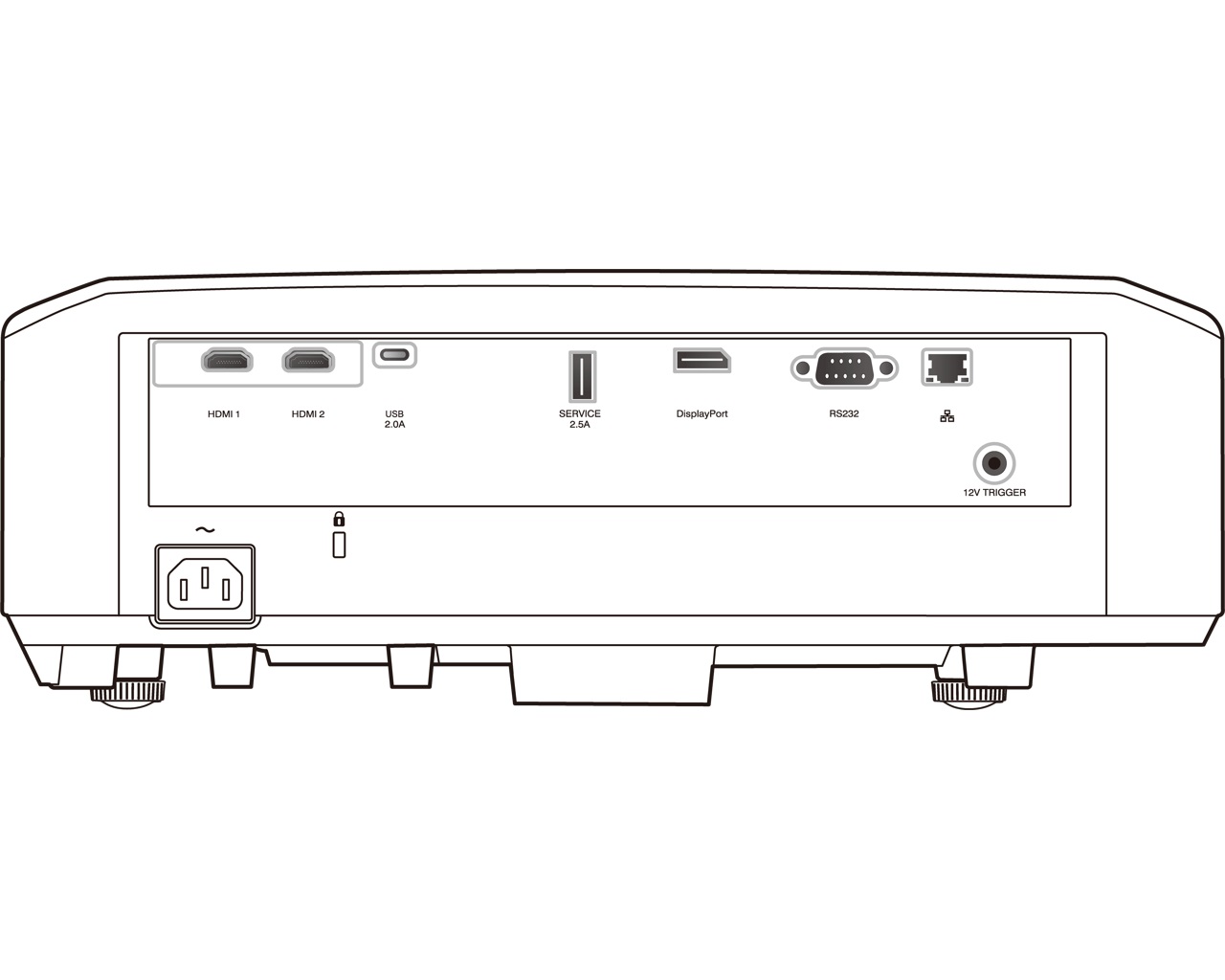 Разъемы: Display Port in, HDMI x2 с поддержкой HDCP 2.3, USB Type C, USB Type A (питание 1.5 A), RS-232, LAN и Trigger (12 V).