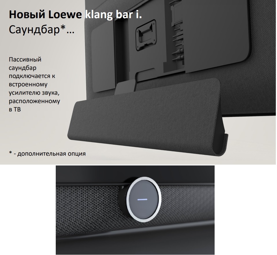 Кроме того, телевизор совместим с новой звуковой системой Loewe klang bar i.