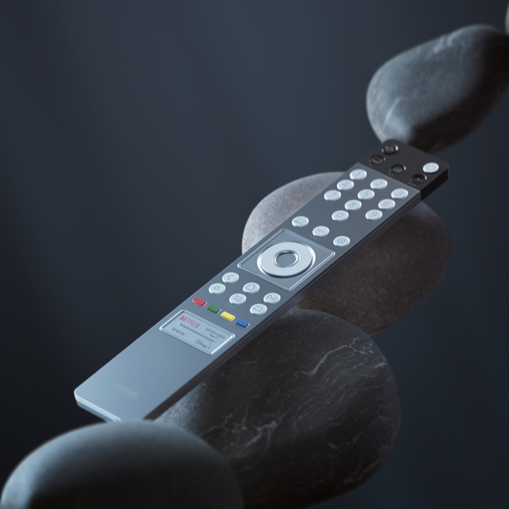 Телевизор также оснащен пультом дистанционного управления Loewe с ИК-управлением, Bluetooth-соединением и голосовым управлением.