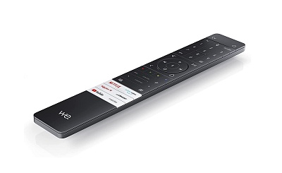 Пульт напоминает оригинальный пульт дистанционного управления от Loewe, гладкий, интуитивно понятный, изготовленный из высококачественных материалов, с выразительным логотипом We. by Loewe и прямым доступом к основным потоковым сервисам.