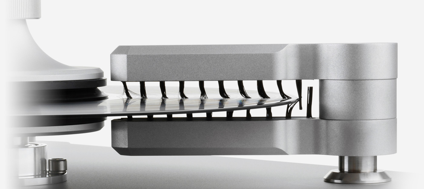 Продукцию Clearaudio отличает футуристический дизайн, изолированные и экранированные моторы, геометрически оптимизированная форма, способствующая подавлению резонансов, и возможность монтажа самых различных тонармов.