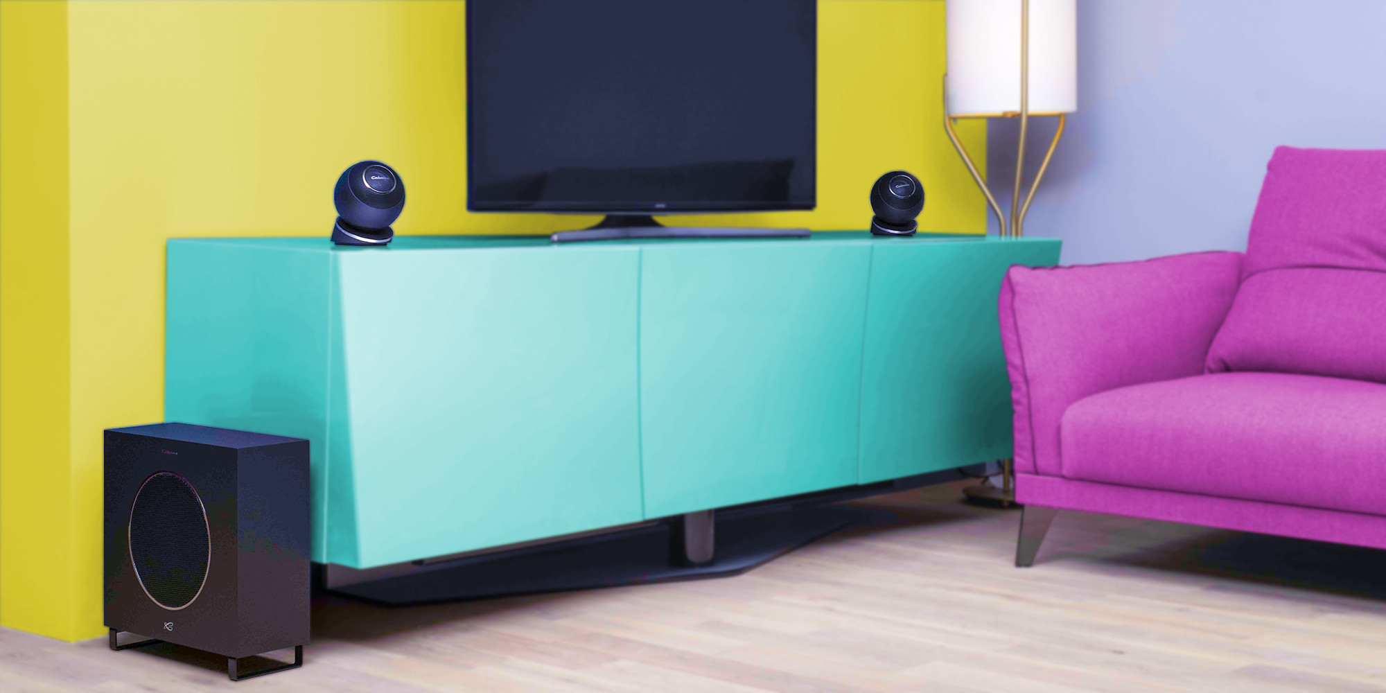 Колонки можно крепить как на вертикальных, так и на горизонтальных поверхностях. Основания — поворотные, с магнитной регулировкой, что облегчает установку. Таким образом, по словам разработчиков, сателлиты можно с легкостью разместить так, чтобы получить «впечатляющую и реалистичную звуковую сцену с минимальным физическим присутствием колонок».