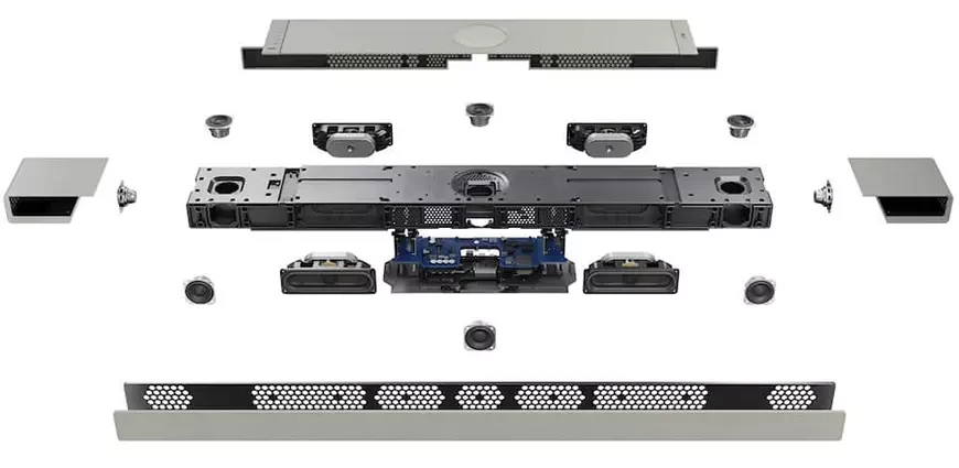 Звуковая панель KEF XIO оснащена шестью динамиками Uni-Q MX, компактной версией хорошо зарекомендовавшего себя массива Uni-Q от KEF, разработанного для равномерного распределения звука по комнате. Низкочастотный выход обрабатывается парой динамиков P185 LF с использованием подвесов P-Flex. Такая конструкция направлена на снижение вибраций и искажений корпуса.