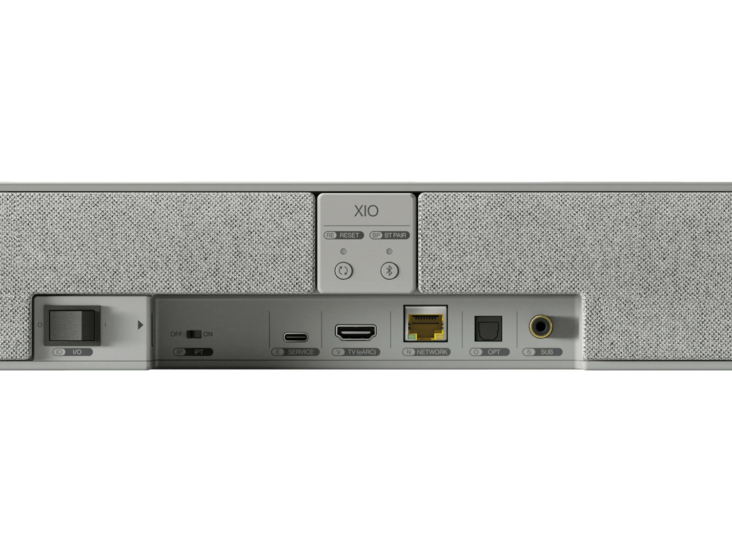 KEF XIO — саундбар, конфигурация: 5.1.2, звуковая мощность: 820 Вт. Габариты, мм: 1210 х 165 х 70. KEF XIO оснащена 12-ю усилителями класса D и поддерживает такие форматы, как Dolby Atmos, DTS:X и Sony 360 Reality Audio, предназначенная для передачи пространственного звука из одного корпуса.