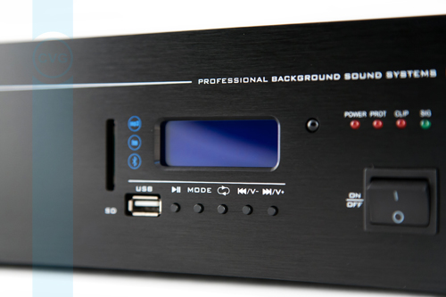 Профессиональный 100V микшер-усилитель cо встроенным модулем источника сигнала (MP3 - USB/SDcard, FM тюнер, Bluetooth) для качественных систем трансляции фоновой музыки и голосового оповещения...
