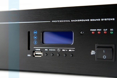 Профессиональный двухканальный стереофонический микшер-усилитель для систем фонового звука. Встроенный источник сигнала: плеер USB/SD (mp3, wma, flac), FM тюнер, Bluetooth. Мощность - 2x100Вт/...