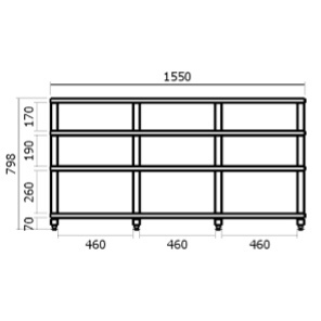 Стойка под Hi-Fi/ High-End аппаратуру. Полки - шпонированный МДФ. Габаритный размер модуля: ширина 1550 мм, глубина 450 мм, высота 798 мм. Толщина полки 27 мм. Максимальная нагрузка на полку 100 кг. Опирается на пол через акустические конусы с регулировкой. Стойки между полками изолированы антирезонансными прокладками. Внутри стоек виброшумопоглoщающая засыпка.