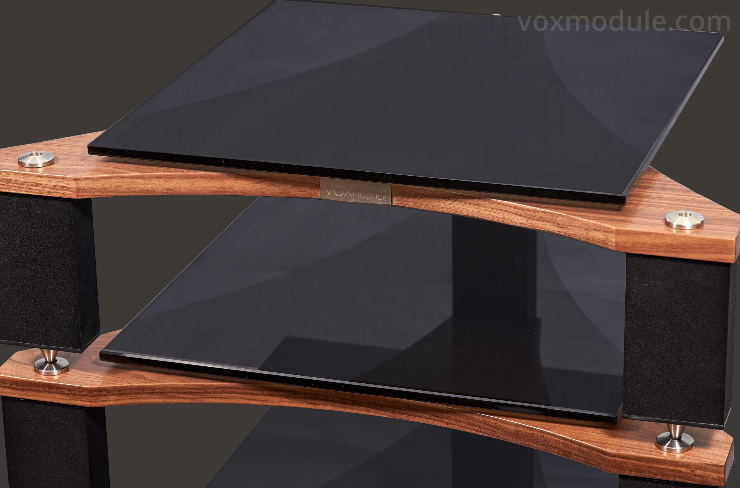 Цена за один уровень. Стойка под Hi-Fi/ High-End аппаратуру. Серия VIP: полки - шпонированный МДФ - 27мм, стекло 15мм. Накладки на ножки - массив.
