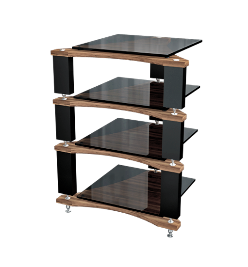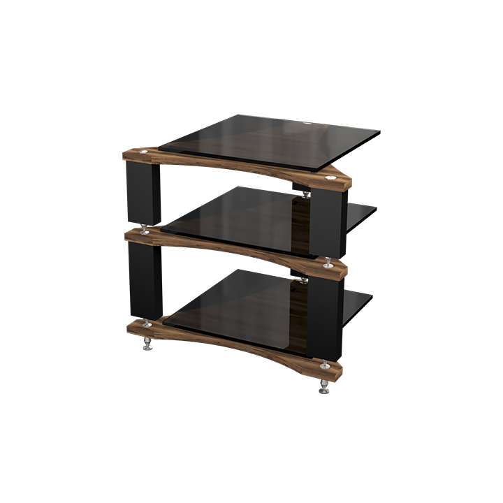 Стойка под Hi-Fi аппаратуру. Модульная конструкция. Каждая секция опирается на шипы, для устранения передачи вибраций. Черные полки из закалённого стекла, черные стальные стойки, ширина полок 559 мм. ...