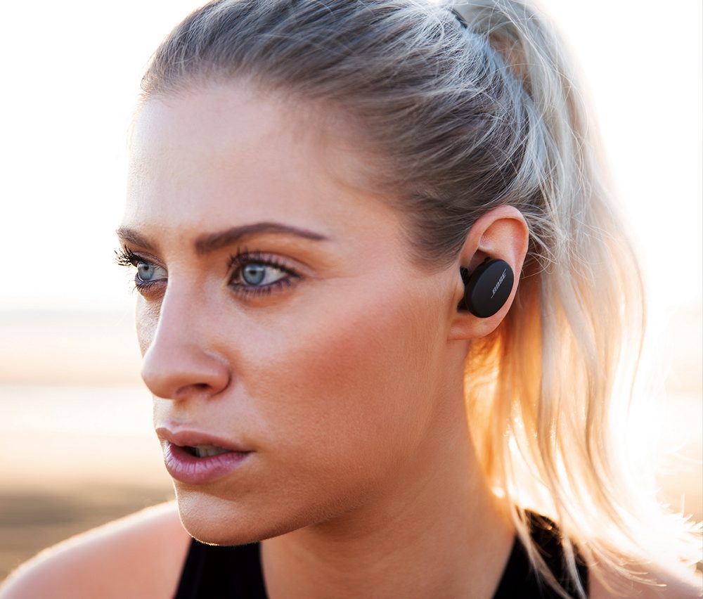 Bose Sport Earbuds - полностью беспроводные наушники-вкладыши с надёжной посадкой для занятий спортом и с защитой от пота.