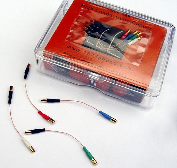 Кроме того, для повышения прочности и качества контакта их диаметр точно адаптирован к размерам, наиболее часто встречающимся на фонооборудовании, а именно 1,2 мм на стороне фонокартриджа и 1,0 мм для разъемов, расположенных на стороне тонарма.