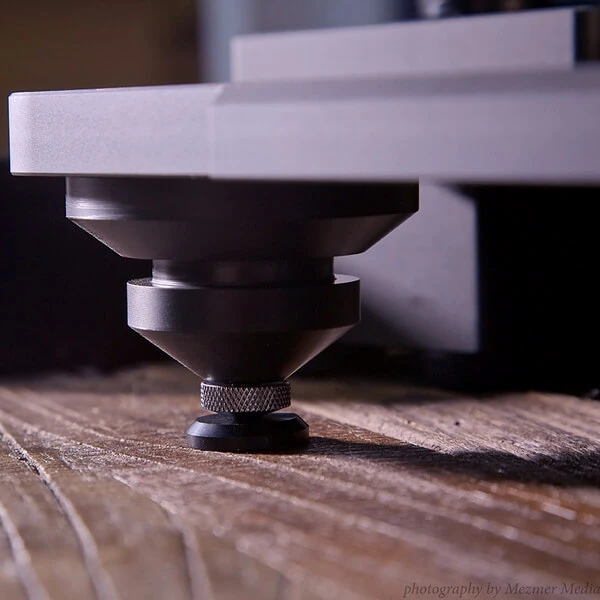 Стол (шасси) выточен из цельного блока алюминия и опирается на три широкие ножки из материала POM (полиформальдегида) для поглощения вибрации. В конструкции стола используются сочетание алюминиевых, POM, акриловых и небольших медных цилиндров для эффективного подавления вибрации.