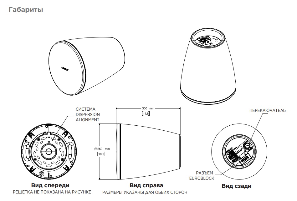 Элегантная форма громкоговорителей гармонично вписывается в любой дизайн коммерческих помещений. Съемные логотипы на грилях.
