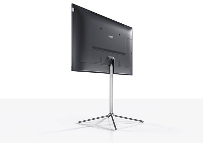 Напольная подставка для ТВ Loewe с диагональю от 32 до 50 дюймов. Такая стойка с изящно изогнутыми ножками придает модели парящий вид, и имеет скрытую кабельную проводку.